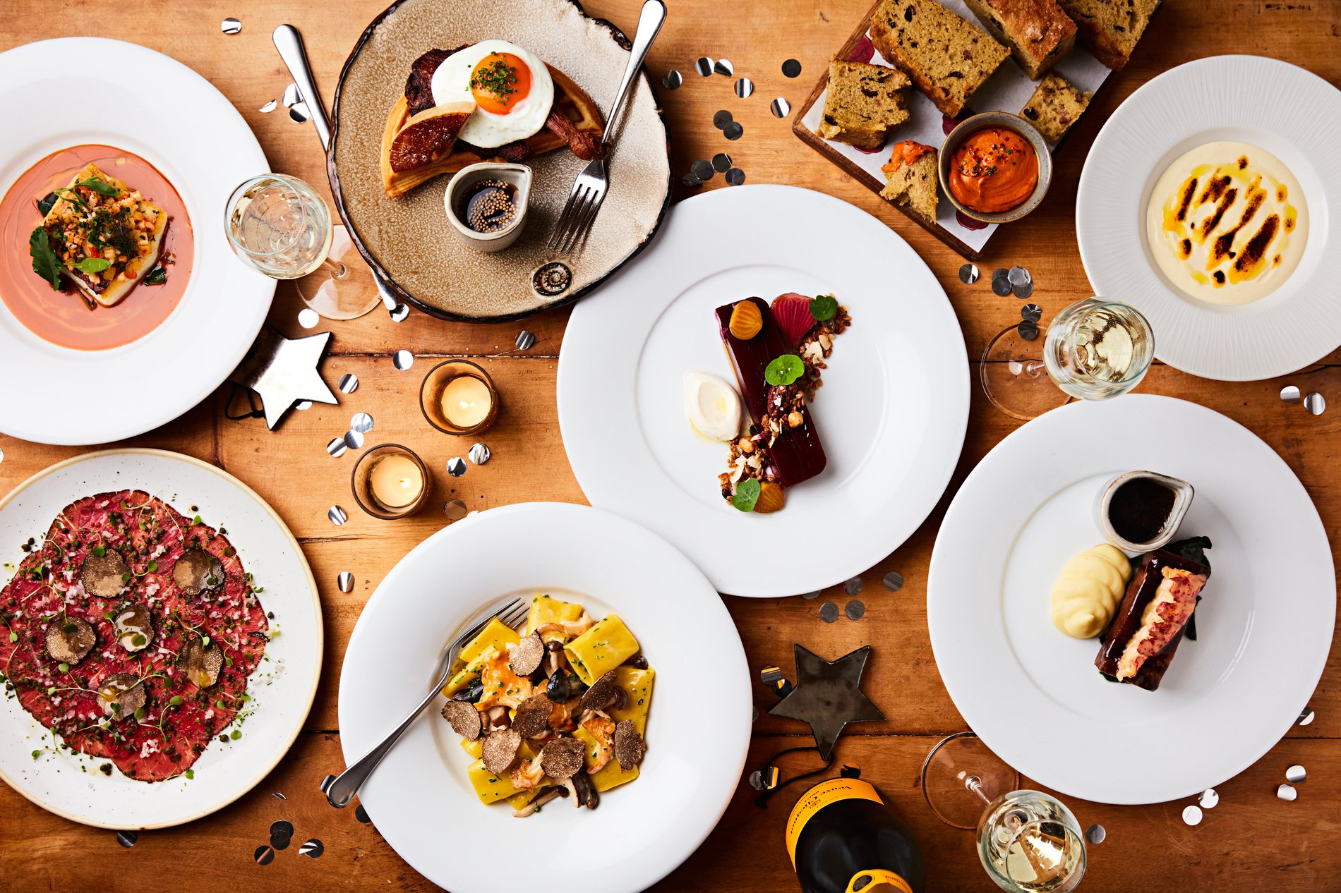 Champagne & truffle sabayon, Comté grilled cheese